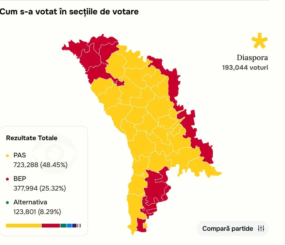 Astfel, noul Parlament al Republicii Moldova va avea 101 deputați, cu o majoritate confortabilă deținută de PAS, în timp ce opoziția va fi fragmentată între patru formațiuni. Rezultatul marchează o nouă etapă politică, cu implicații majore pentru direcția europeană a țării.